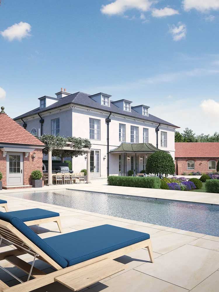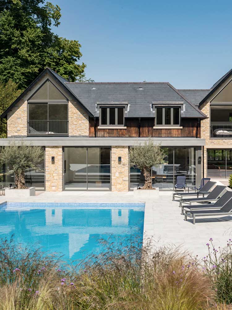 Substantial new country residence was designed and delivered by our practice, working closely with the client from the very first concept discussions through to full project management and completion on site. Set within a beautifully landscaped 12-acre plot, the house sits comfortably within its rural context, combining traditional craftsmanship with contemporary living.