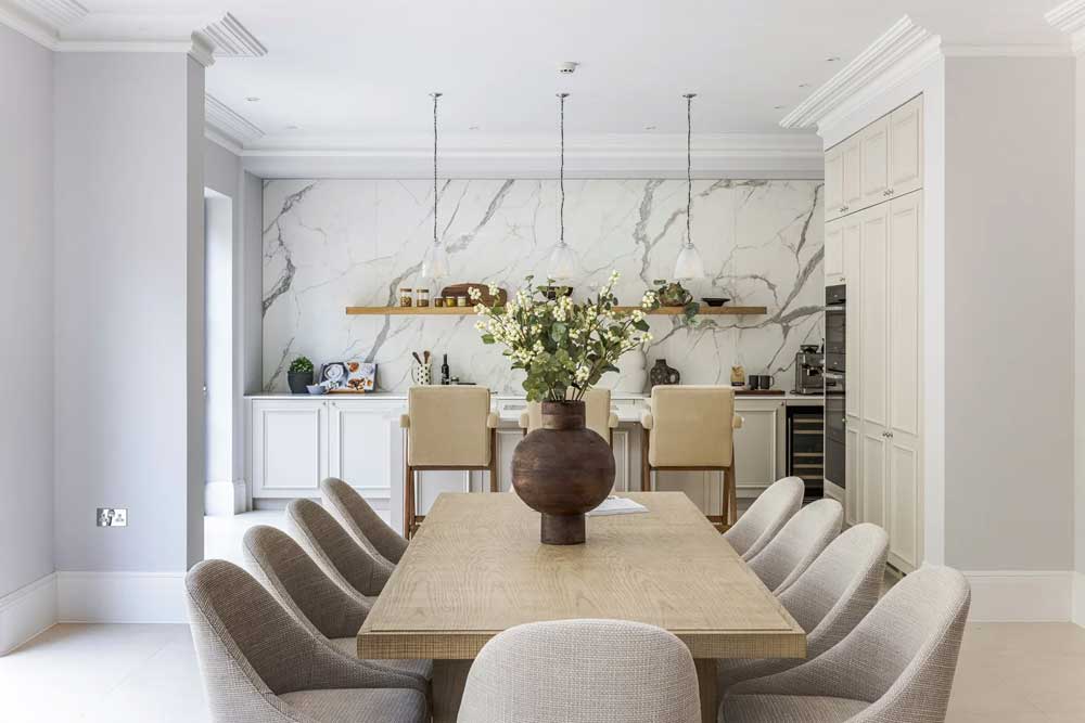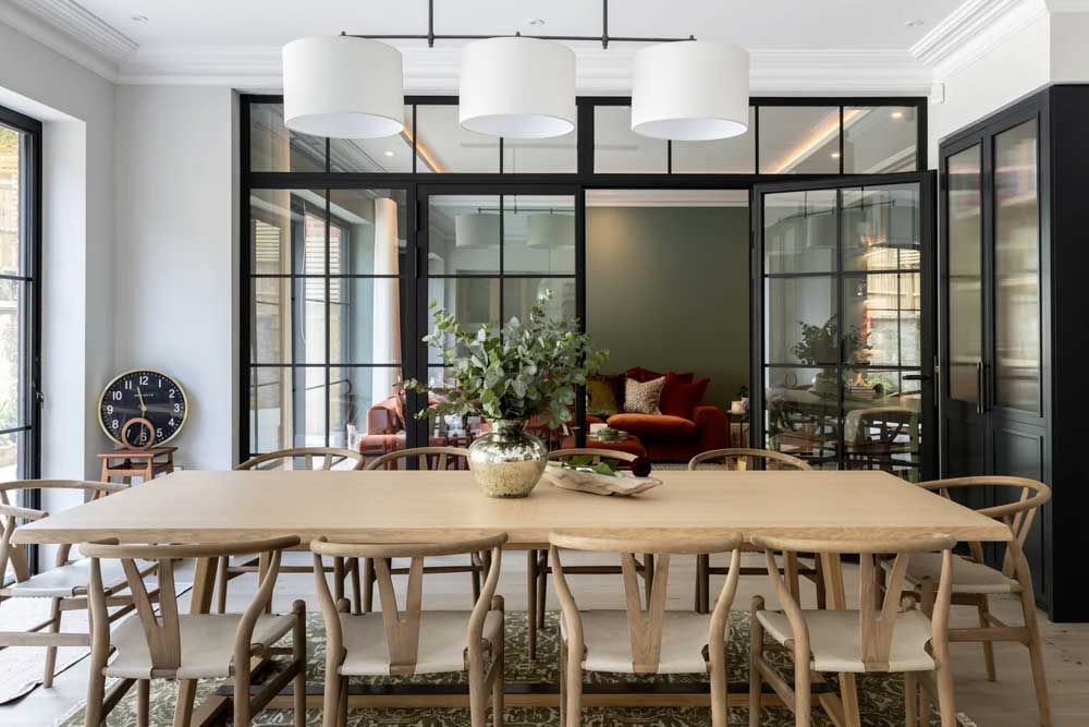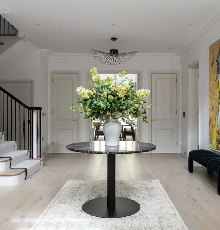 High ceilings, large sash windows, and open-plan layouts create a sense of space and light throughout. Acting as interior coordinators and technical architects, we developed layouts that ensure comfort, natural flow, and functionality. Period-inspired details, such as cornices, panelling, and traditional joinery, blend seamlessly with modern finishes. The interiors of The Lavenders feel bright yet grounded, combining elegance with practicality to meet the needs of modern family life in Surrey.