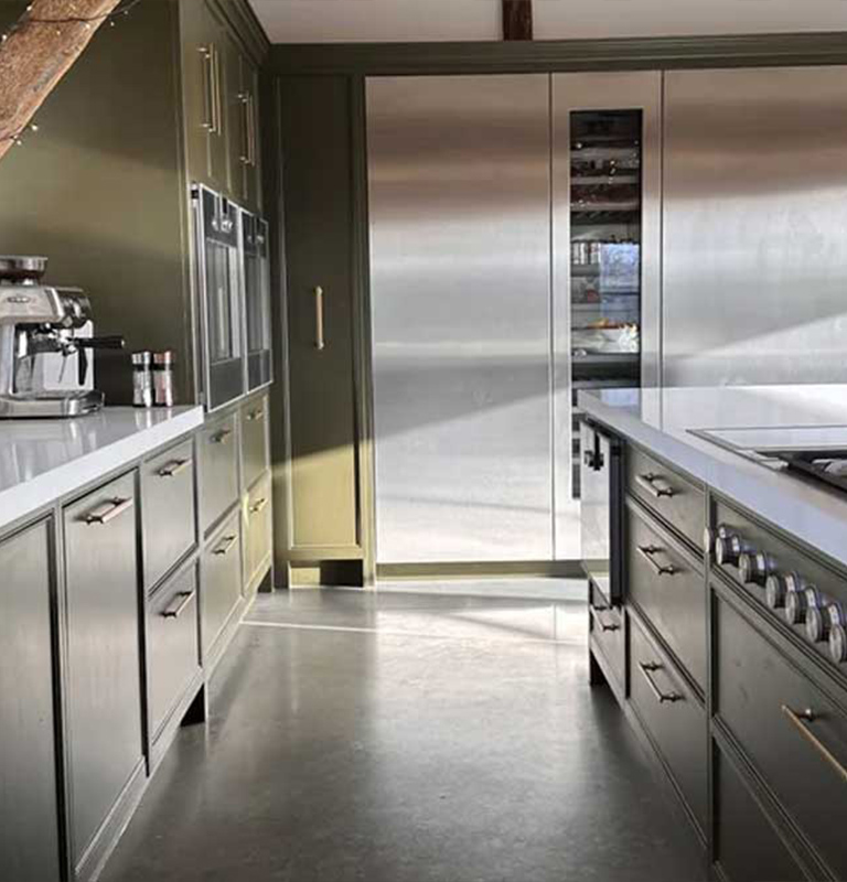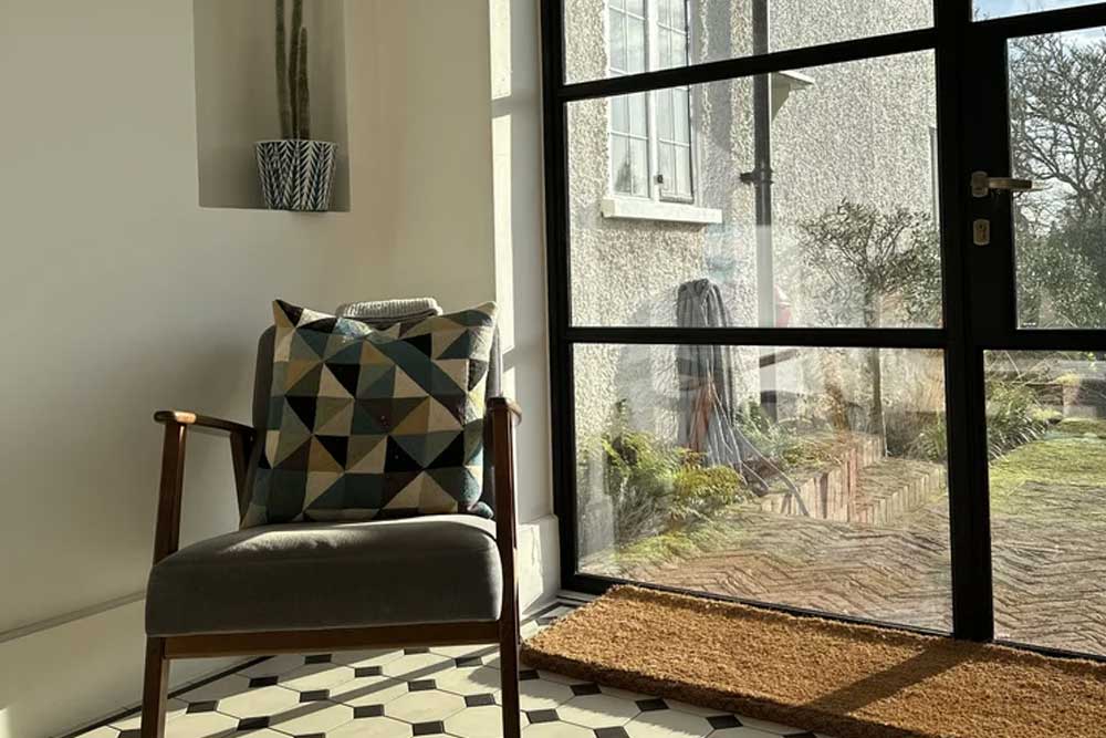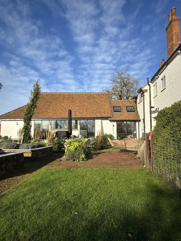 While the external form celebrates heritage, the interiors have been thoughtfully reimagined to meet modern family needs. The restored bakery now opens into a spacious kitchen and dining area with heritage-style doors that connect to the gardens. The combination of traditional timber detailing and contemporary finishes creates a subtle balance between authenticity and comfort. Acting as both residential architects and extension architects, we ensured that each internal space feels bright, cohesive, and in harmony with the building’s original scale. The new layout reflects modern living standards while respecting centuries of architectural heritage.
