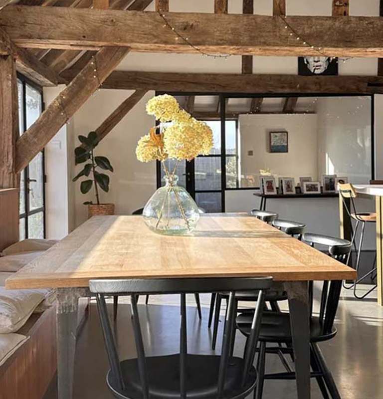 Working as listed building architects, our team began with a detailed analysis of the structure and layout. We undertook measured surveys and technical drawings to assess the existing conditions and plan the restoration. The bakery’s original timber frame, exposed beams, and solid brickwork were carefully inspected to understand their integrity. As part of the process, we collaborated closely with heritage officers to ensure compliance with Cobham’s local conservation guidelines. Each intervention was guided by sensitivity to materials, structure, and proportion, preserving what was historic while renewing what was worn.